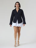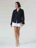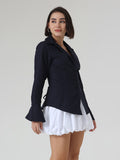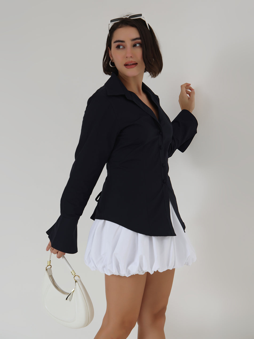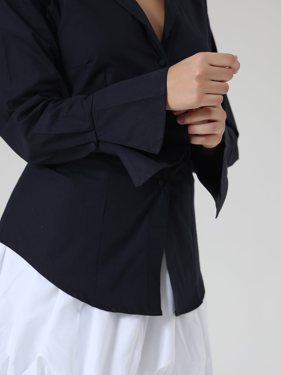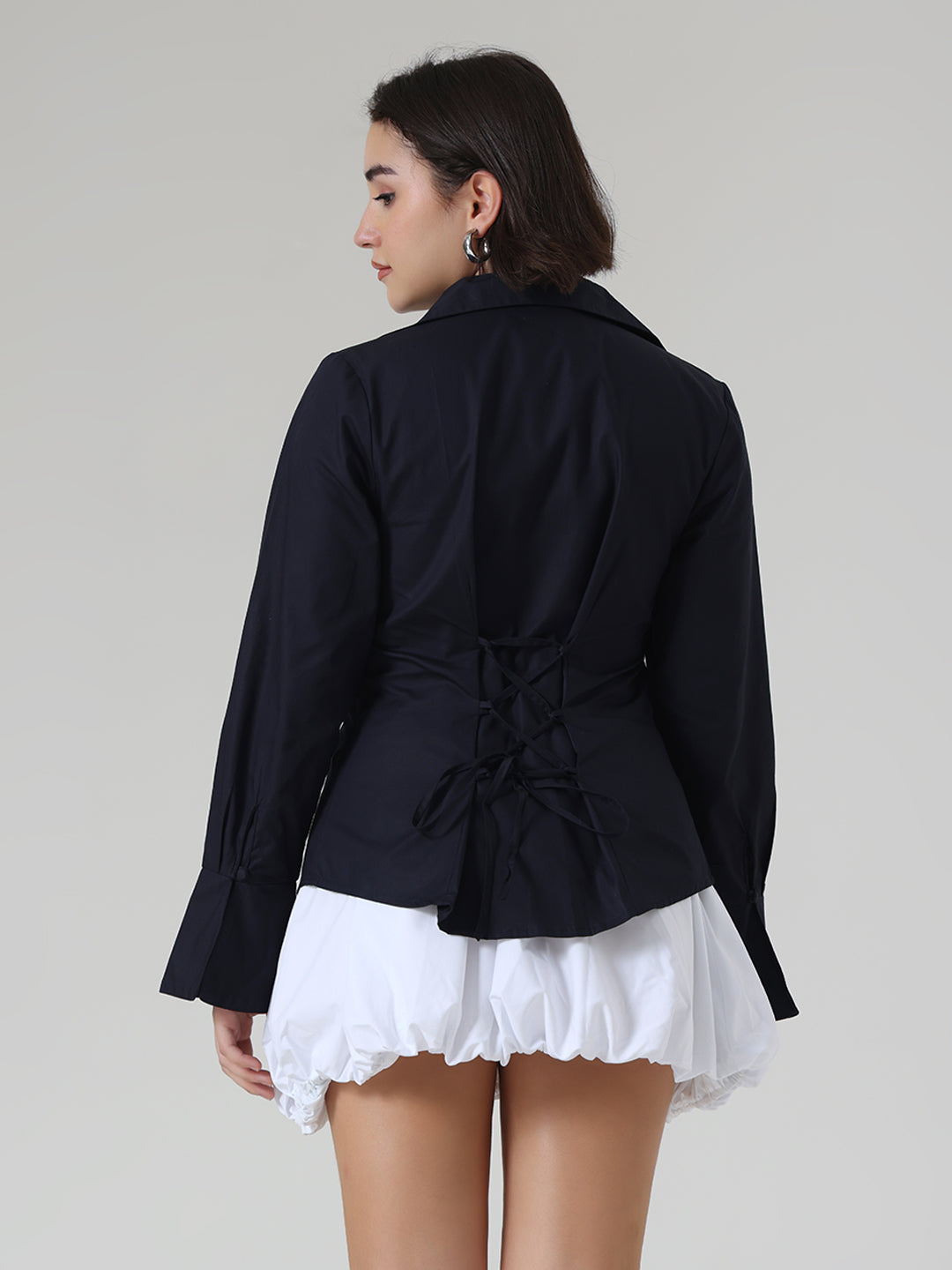 This fitted shirt is crafted from crisp cotton with a timeless pointed collar. It features flared cuffs and a discreet lace-up back for a sophisticated, adjustable fit, offering a modern take on a classic silhouette.