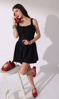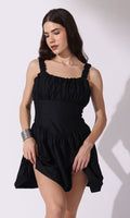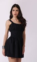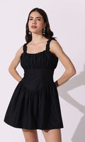 Crisp cotton and a touch of romance. This mini dress is all about clean lines and a whimsical feel, featuring a ruched square neckline and a naturally cinched waist that's ready for any summer outing.