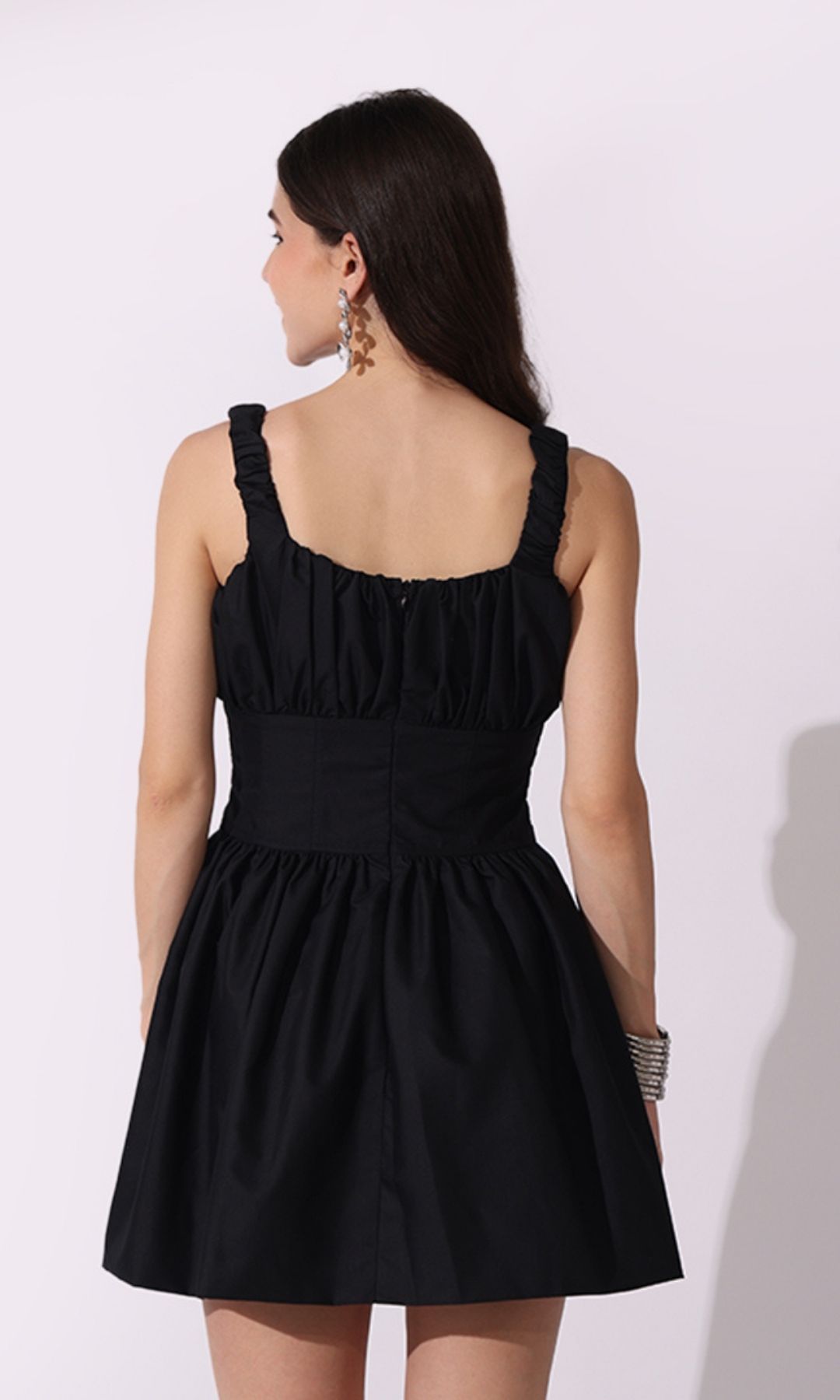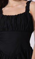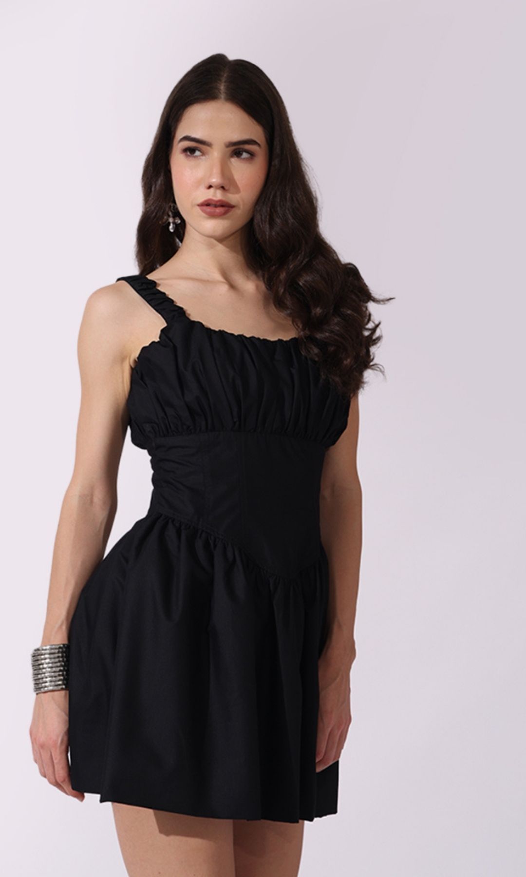STYLE: Ruched bust, Corset waist, Gathered skirt