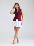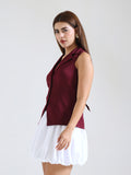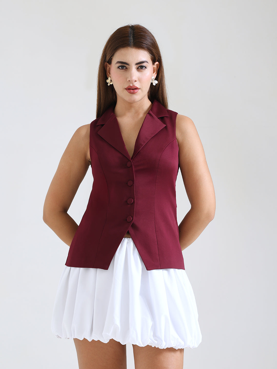 A tailored vest designed to elevate your style with clean lines and a polished silhouette. The Verona Vest brings a bold, structured look that pairs flawlessly with playful skirts, denims, or statement bottoms.