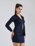 Sophistication meets modern flair. This co-ord set is all about power dressing with a twist a sleek blazer-style top and a streamlined mini skirt, perfect for making a statement at any event.