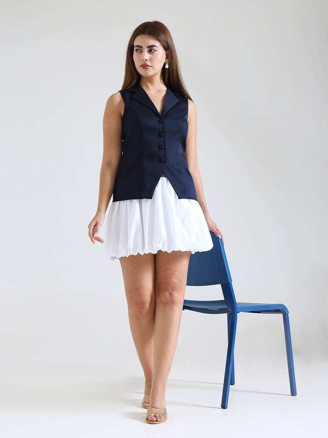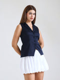 A tailored vest designed to elevate your style with clean lines and a polished silhouette. The Verona Vest brings a bold, structured look that pairs flawlessly with playful skirts, denims, or statement bottoms.